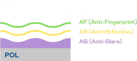 A.R.T.28国际光电发展出独家的表面处理跟多层镀膜技术,,,让外部光线照射到显示器表面时所产生的反射光大幅降低。。。 |