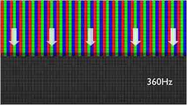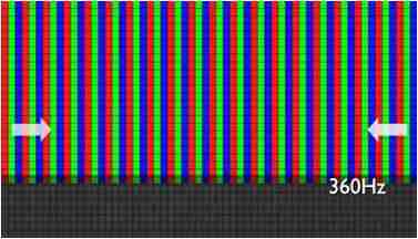 传统液晶驱动是从左到右单向进行,,,,在画面更新速度愈来越愈快的情况下,,,,位于驱动线路末端的右下角区域,,,画素的闸极来不及在短时间内获得足够电压,,无法显示出正确的颜色资讯。。。 |
