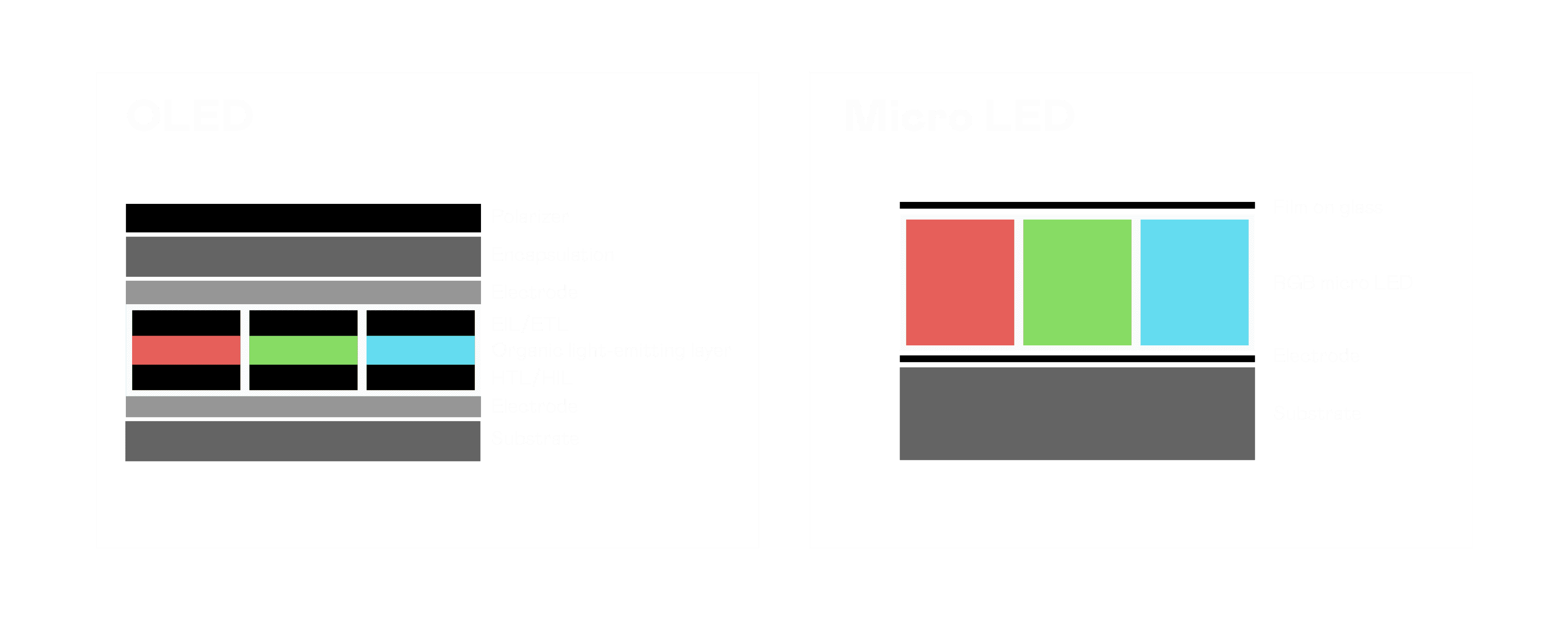 以 LED 做为显示画素,,可让 LED 的发光效率发挥到极致,,,从而让显示器具备优异的亮度表现,,,,不论是在户外或室内,,,,均具备出众的显示效果。。。同时,,与使用有机材料的 OLED 相比,,,LED 具备更稳定、、、、寿命更长的特性,,,,不仅不会有画面烙印问题,,,,而且更不容易出现故障、、坏点。。。