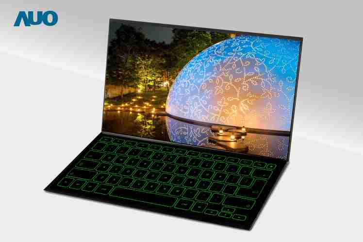 28国际本次展出 15.6吋双螢幕笔电,,,,其中一面螢幕利用高反射光学膜,,,能在省电的状态下呈现出键盘样式,,,,而非一般待机黑色画面,,结合触控功能后即能将这面螢幕切换为键盘,,提升商务笔电多元使用情境。。亦可延伸应用此技术于其他显示器,,,以客制化待机画面融入周边环境,,,,成为装置艺术,,达成一致性的美观效果。。。