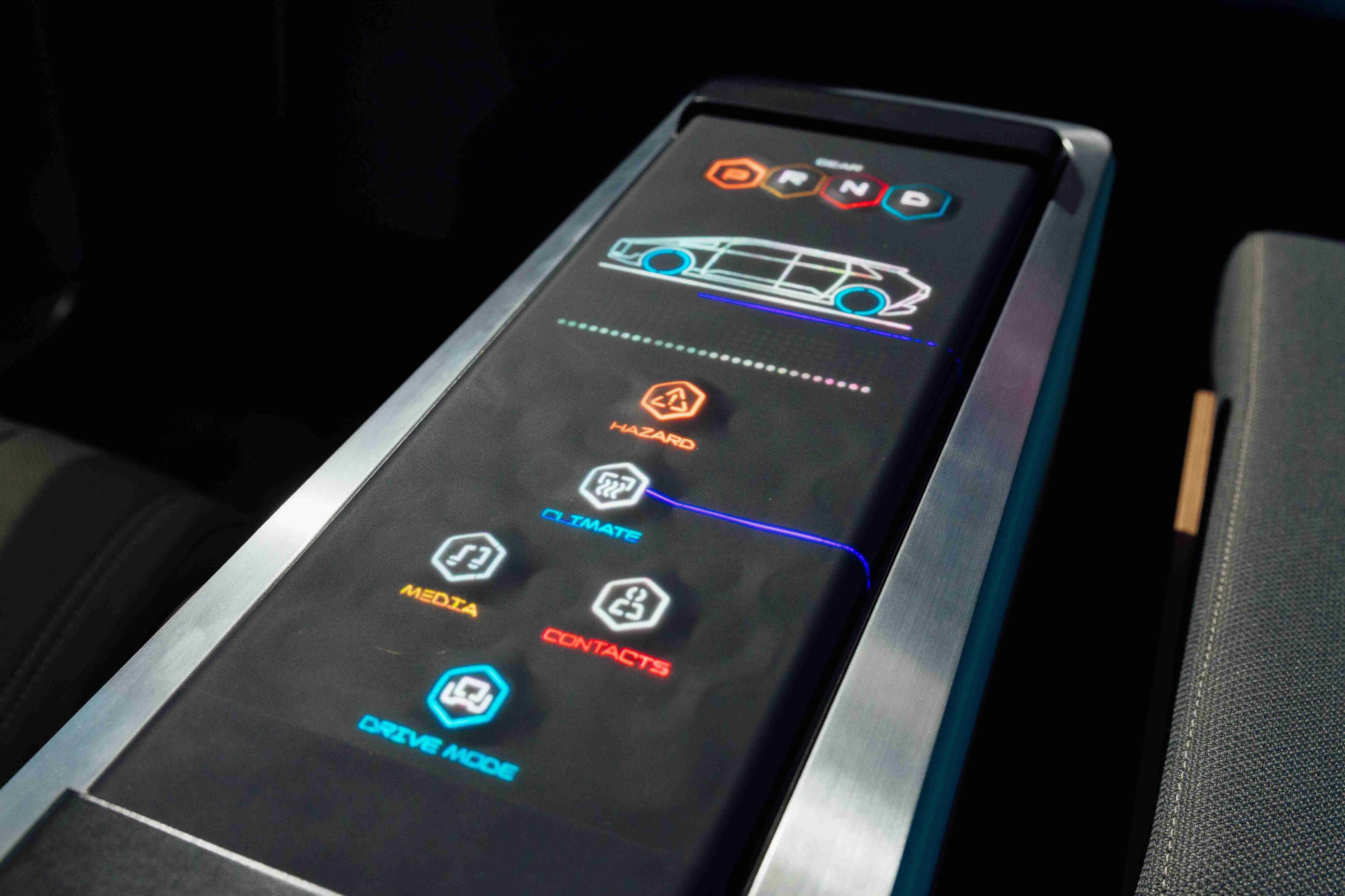 多变形态中控显示(Morphing Center Control)拥有动态变化的表面,,平时常态显示车辆功能,,,,进一步操作时,,则会隆起成为3D 按钮,,,并在触控时以震动回馈,,以精细的操作开创人机互动新境界。。。 ![]()